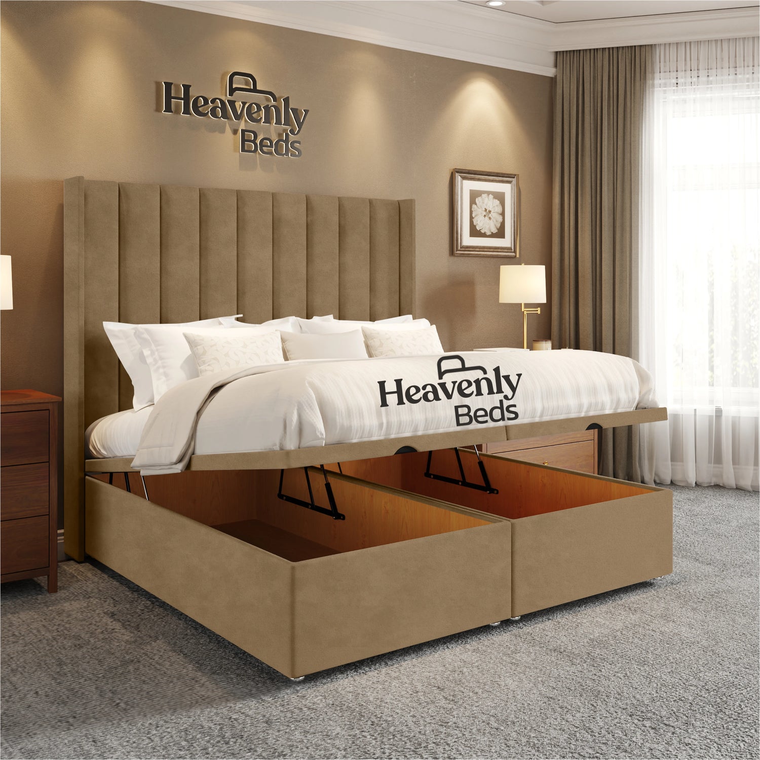 king size and super king size options that offer nothing but luxury and comfort. Besides serving as a beautiful piece of furniture in your bedroom this stylish upholstered bed frame serves as a storage bed that helps keep your space neat.