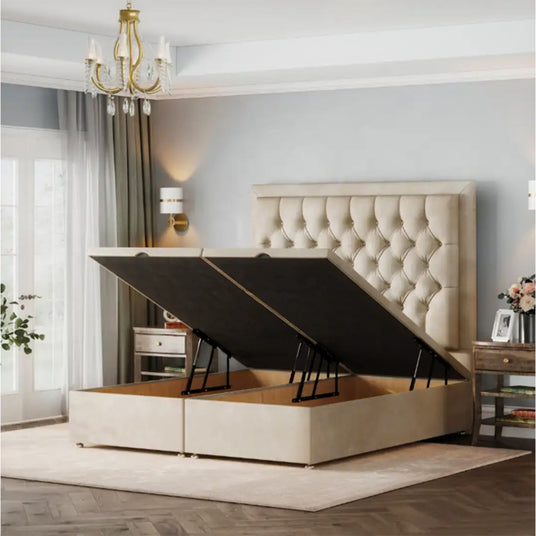 The Ottoman Divan Gas Lift Storage is a stylish and practical solution for your bedroom. This versatile divan gas lift storage bed features a smooth gas lift mechanism, providing easy access to hidden storage space underneath the bed. Available in king size and super king size, this bed with storage offers ample space for all your belongings. Say goodbye to clutter with the ultimate storage solution in a divan gas lift bed frame.